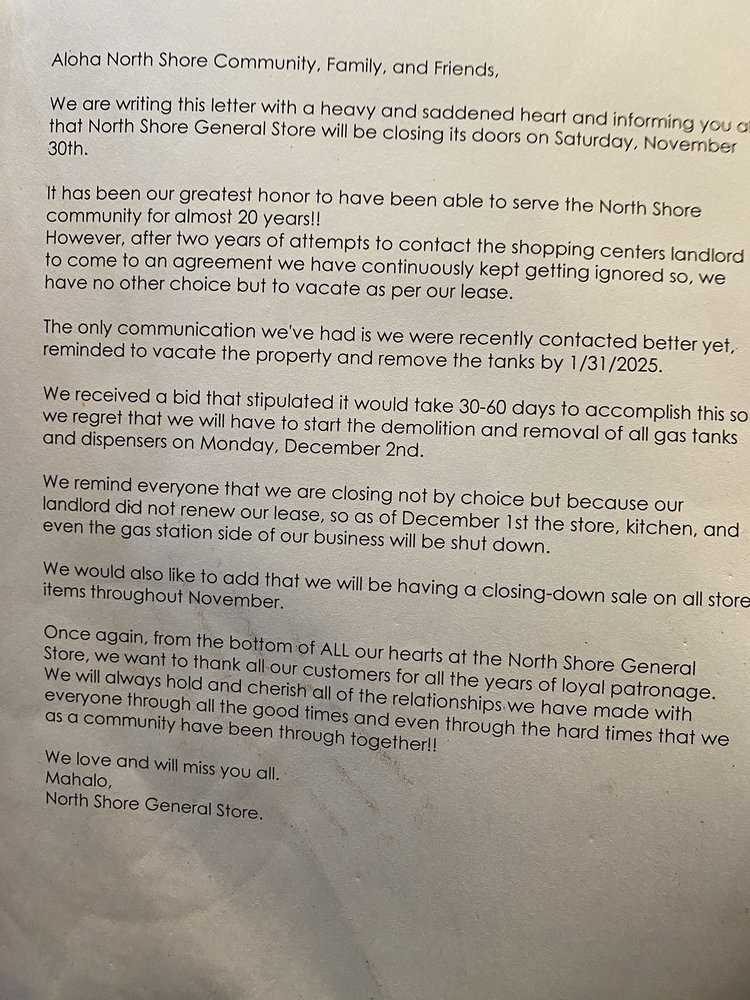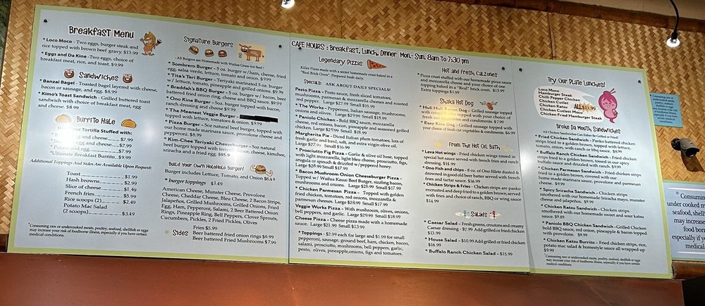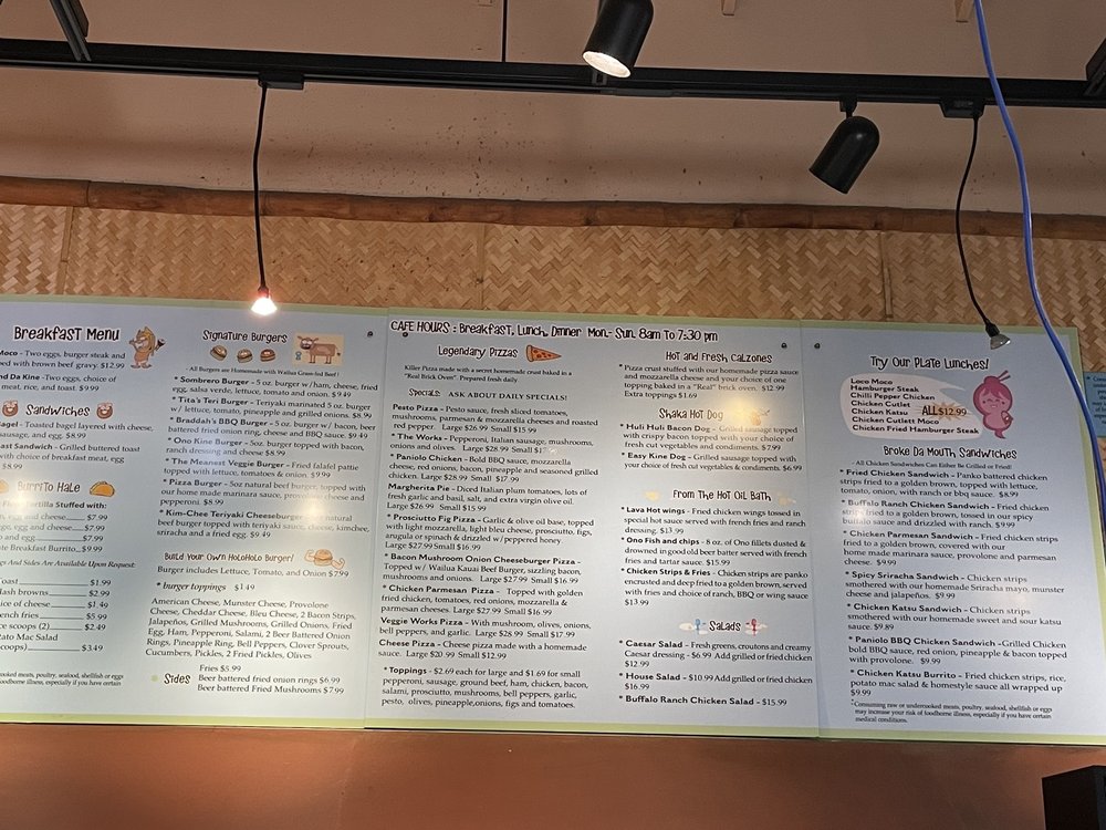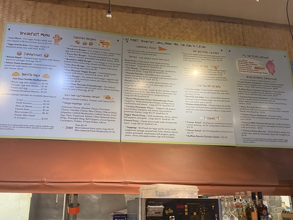 Introducing North Shore General Store, a hidden gem in Princeville, Hawaii, offering a unique blend of pizza and burgers. This casual dining spot is known for its diverse menu, including vegetarian options and Hawaiian favorites like Loco Moco. Customers rave about the flavorful dishes, like the Chili Pepper Chicken and the Sriracha Chicken Sandwich. Despite its unconventional location inside a gas station, the food quality and generous portions make it a must-visit spot for locals and tourists alike. With outdoor seating, Wi-Fi, and a friendly staff, North Shore General Store provides a memorable dining experience in a laid-back setting. Don't miss out on this special place on your next visit to the North Shore!